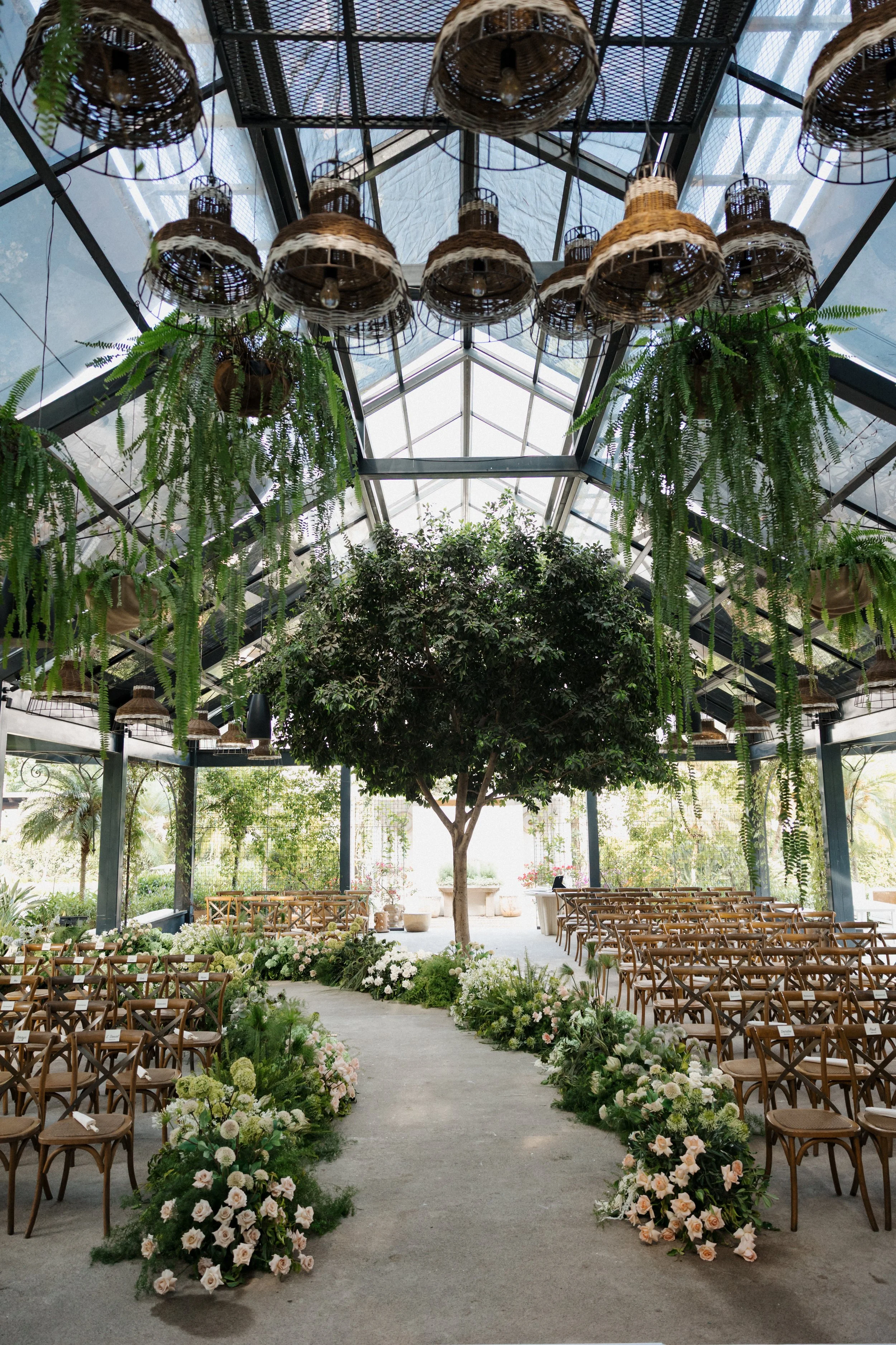 Gaia Haus led the creative direction, blending atmospheric storytelling with sculptural restraint. The white draping mimicked wings mid-flight, while organic florals grounded the space in elegance without excess.